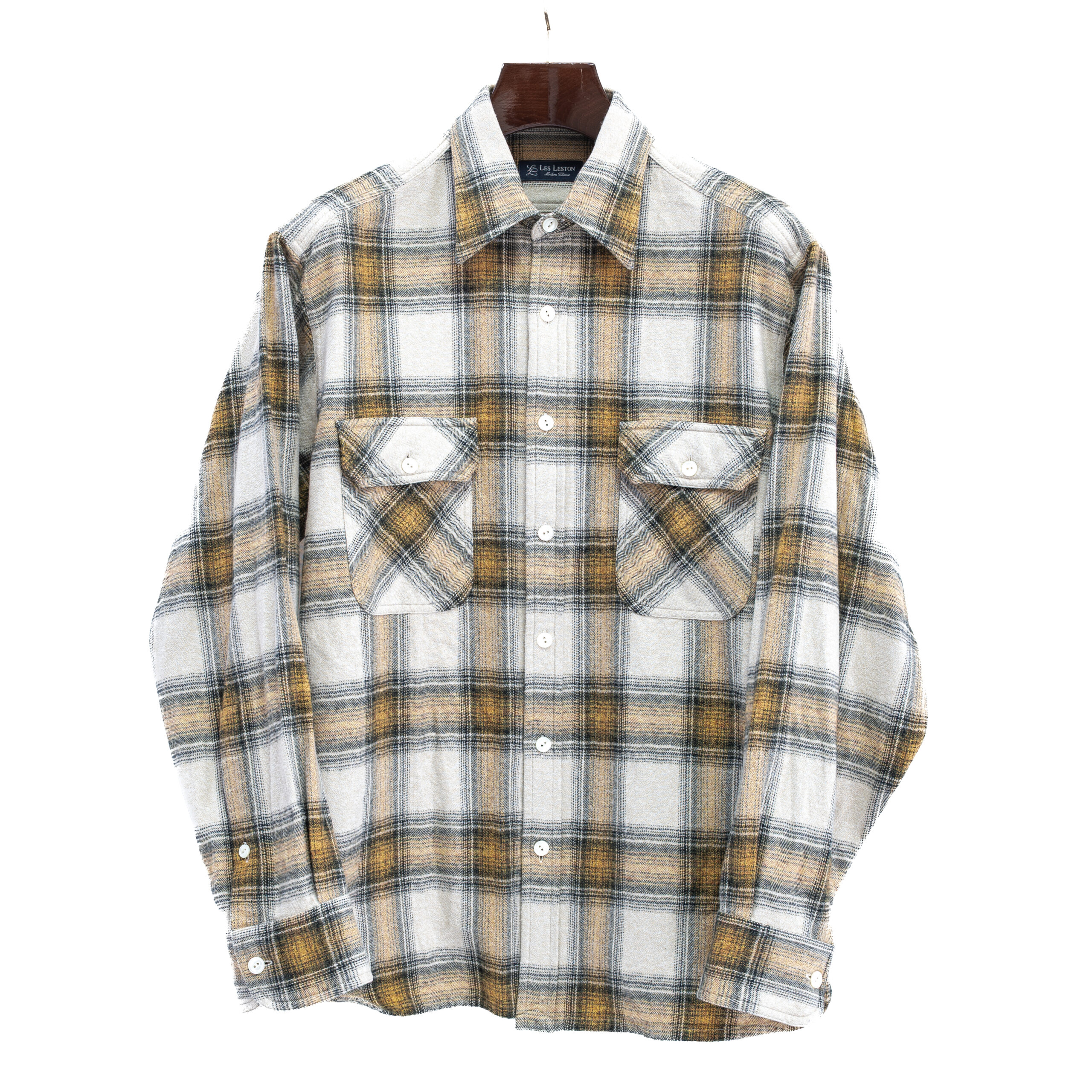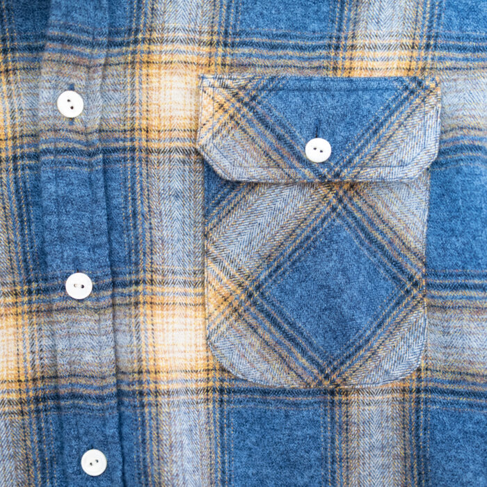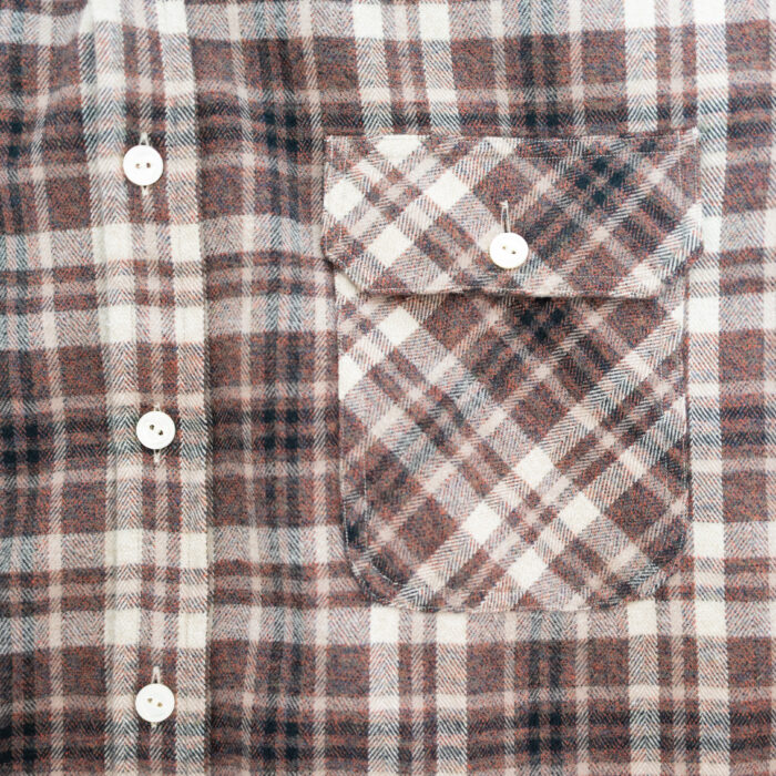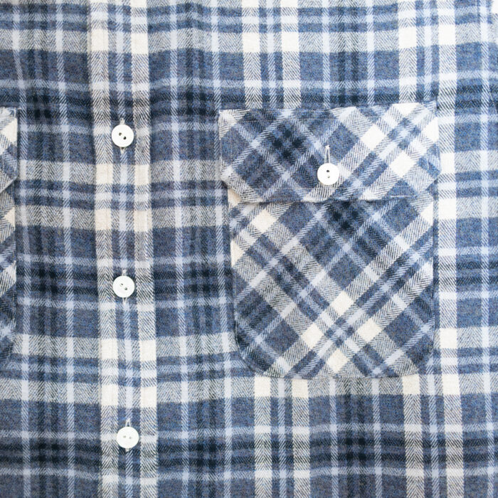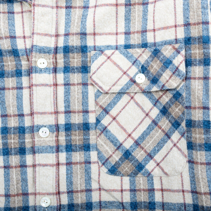 燃杢メランジのコットンフランネルを使用したリラックスフィットのマチ付きポケットシャツです。