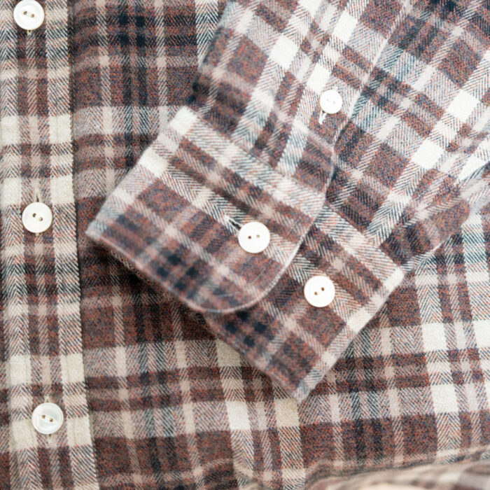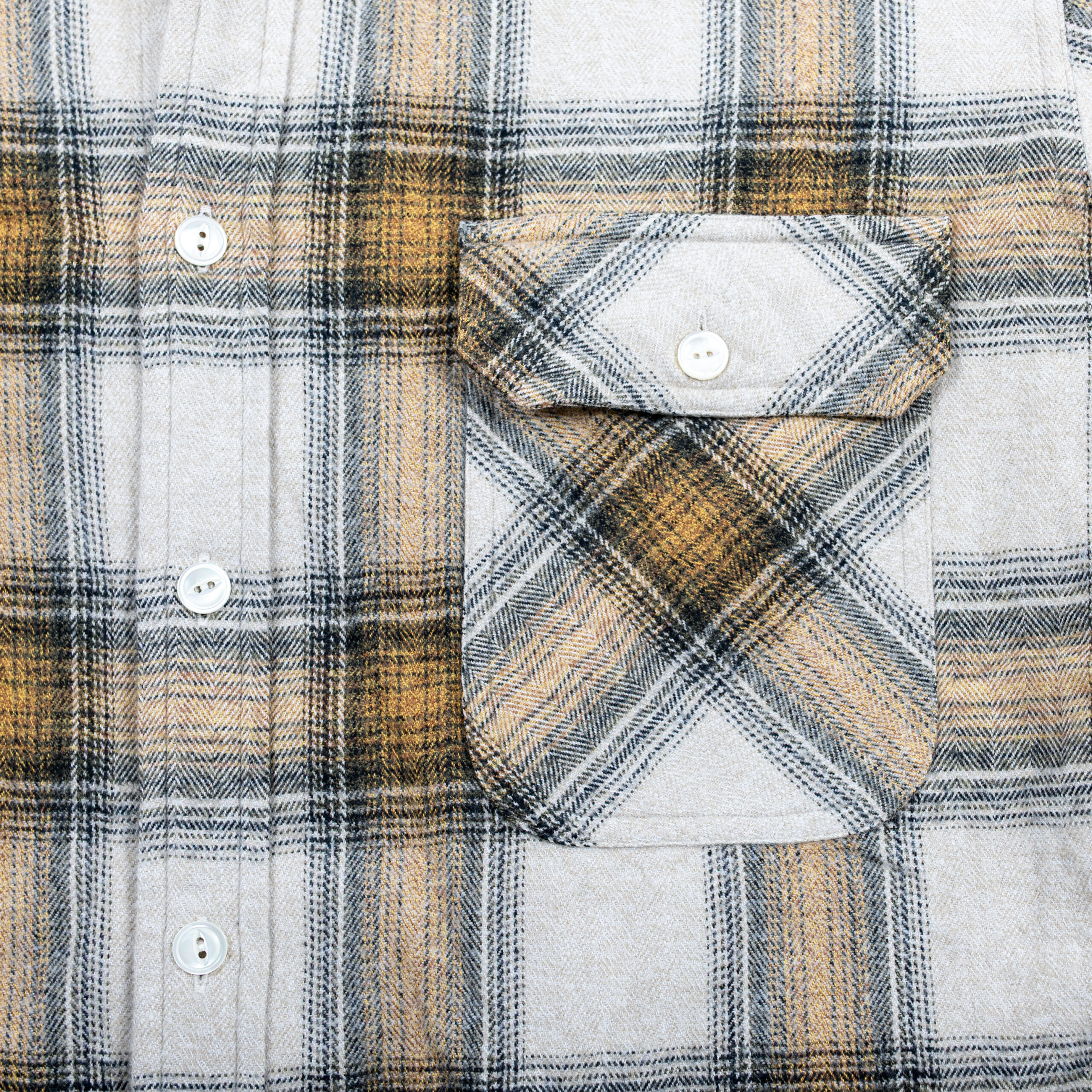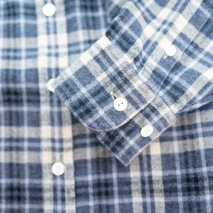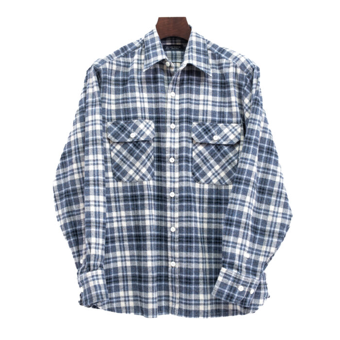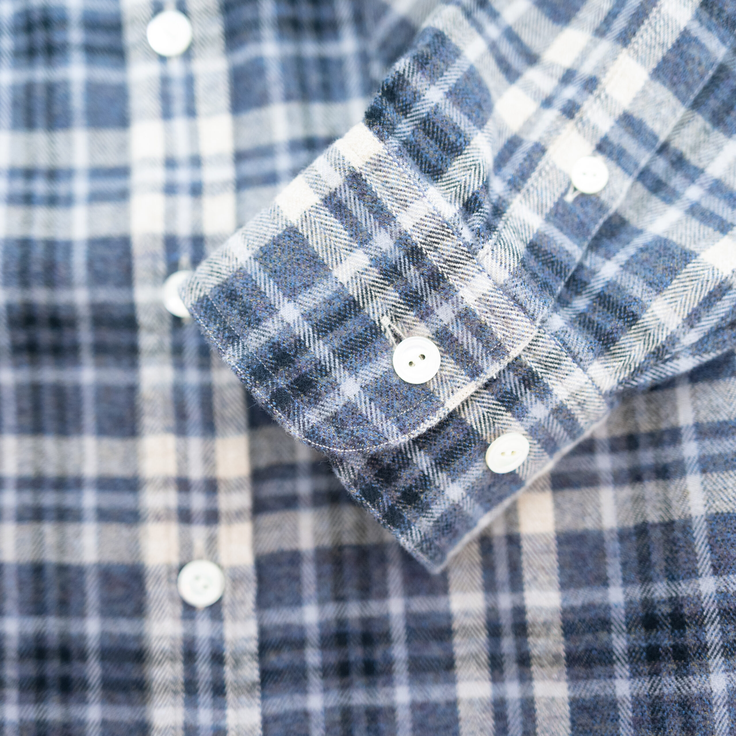 燃杢メランジのコットンフランネルを使用したリラックスフィットのマチ付きポケットシャツです。