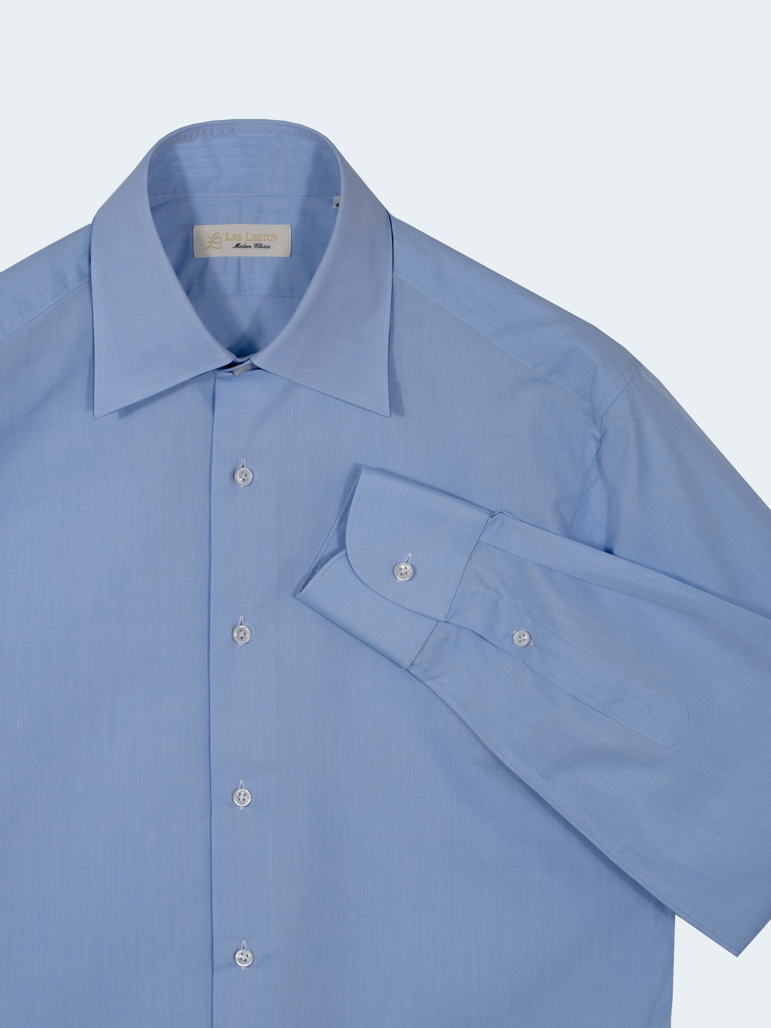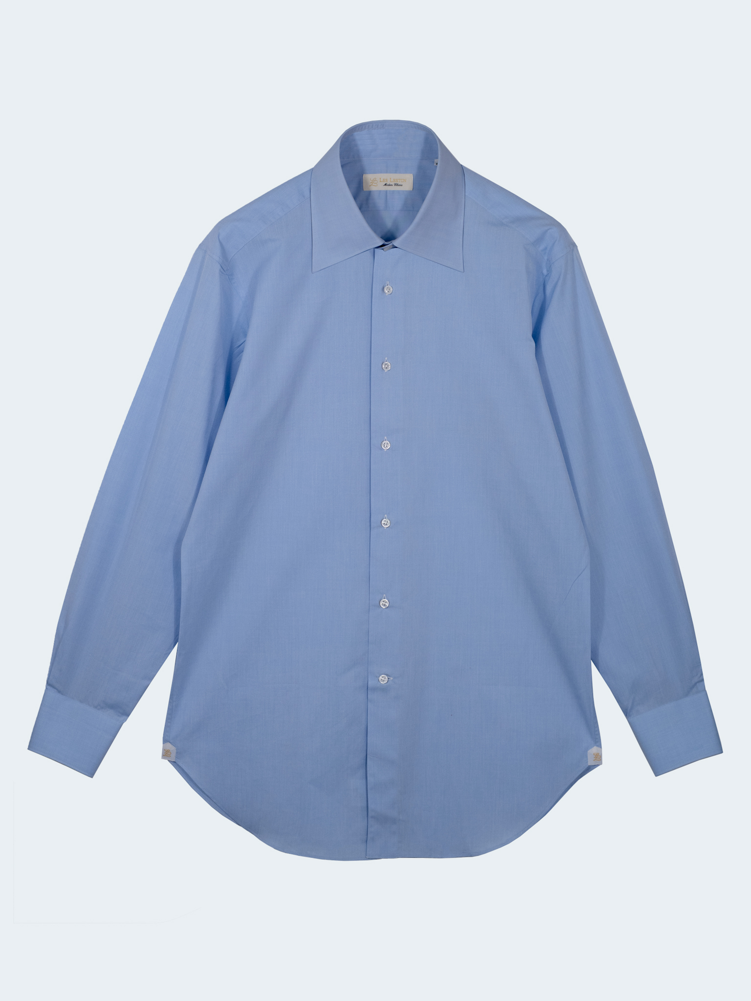 The fabric is a chambray woven from GIZA cotton 100/2 × 100/2, often referred to as “white gold.”