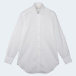 This is our signature semi-wide collar dress shirt.