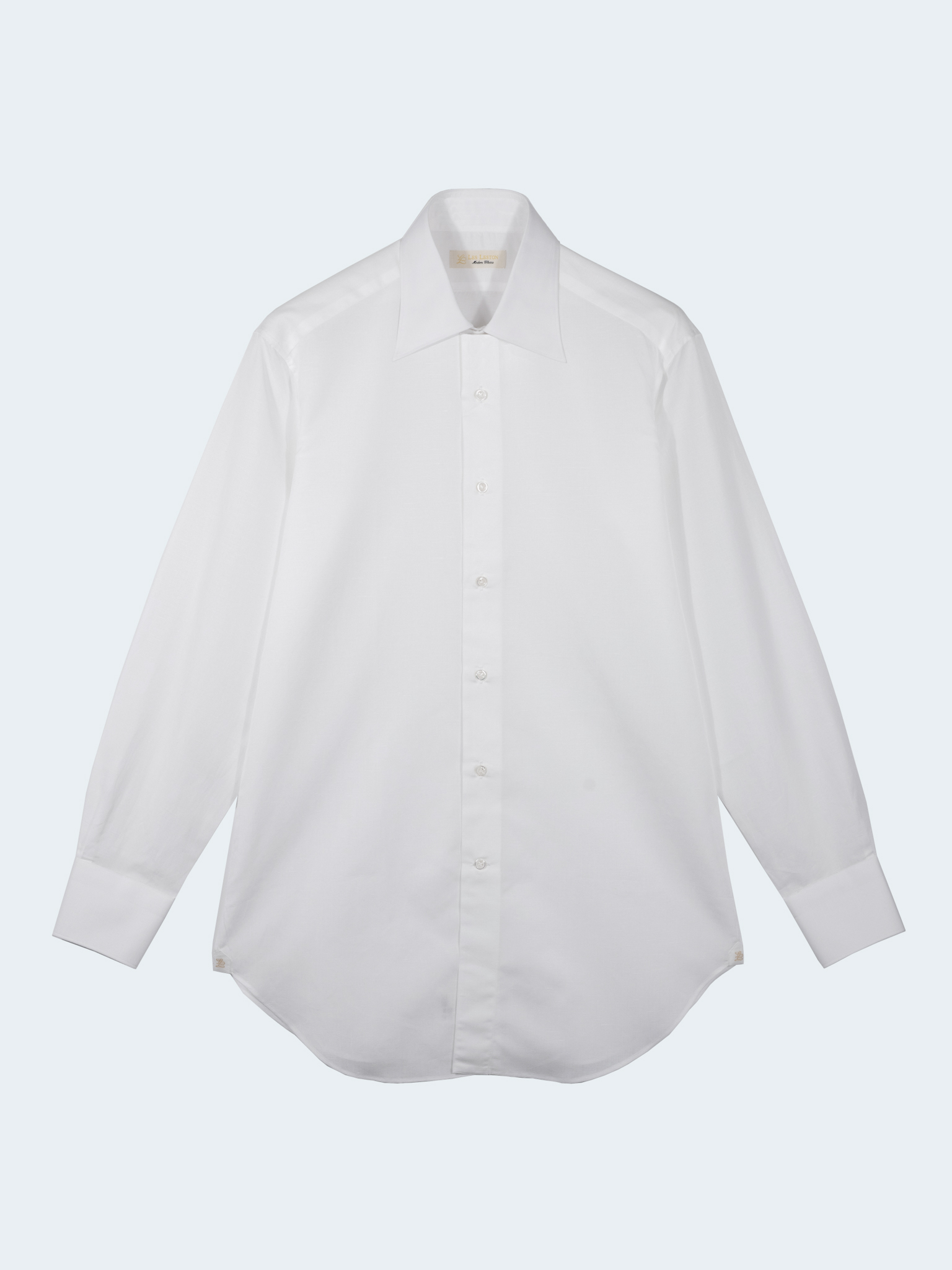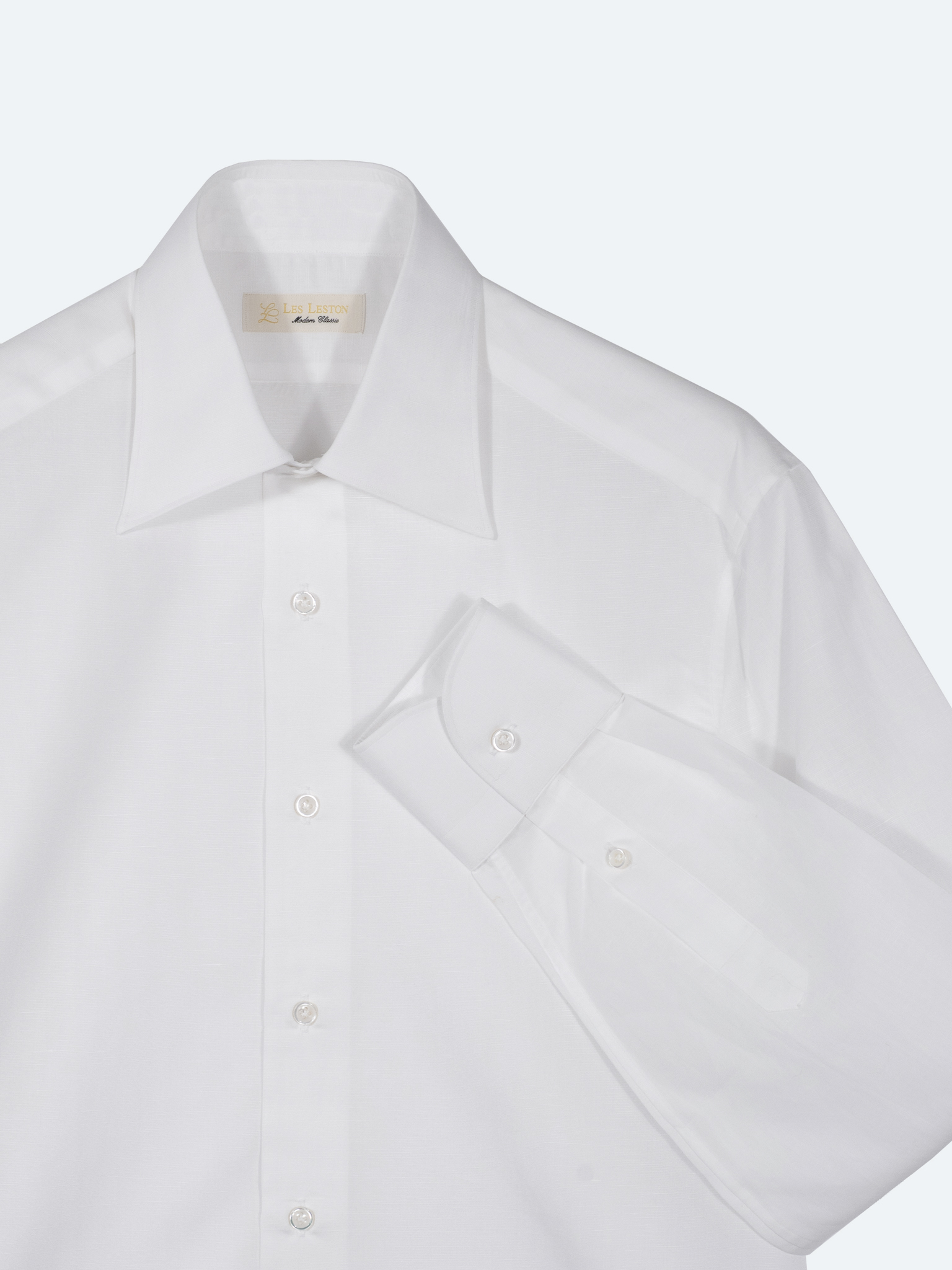 The fabric is a luxurious 120/2×120/2 blend of GIZA cotton—often called “white gold”—and linen.