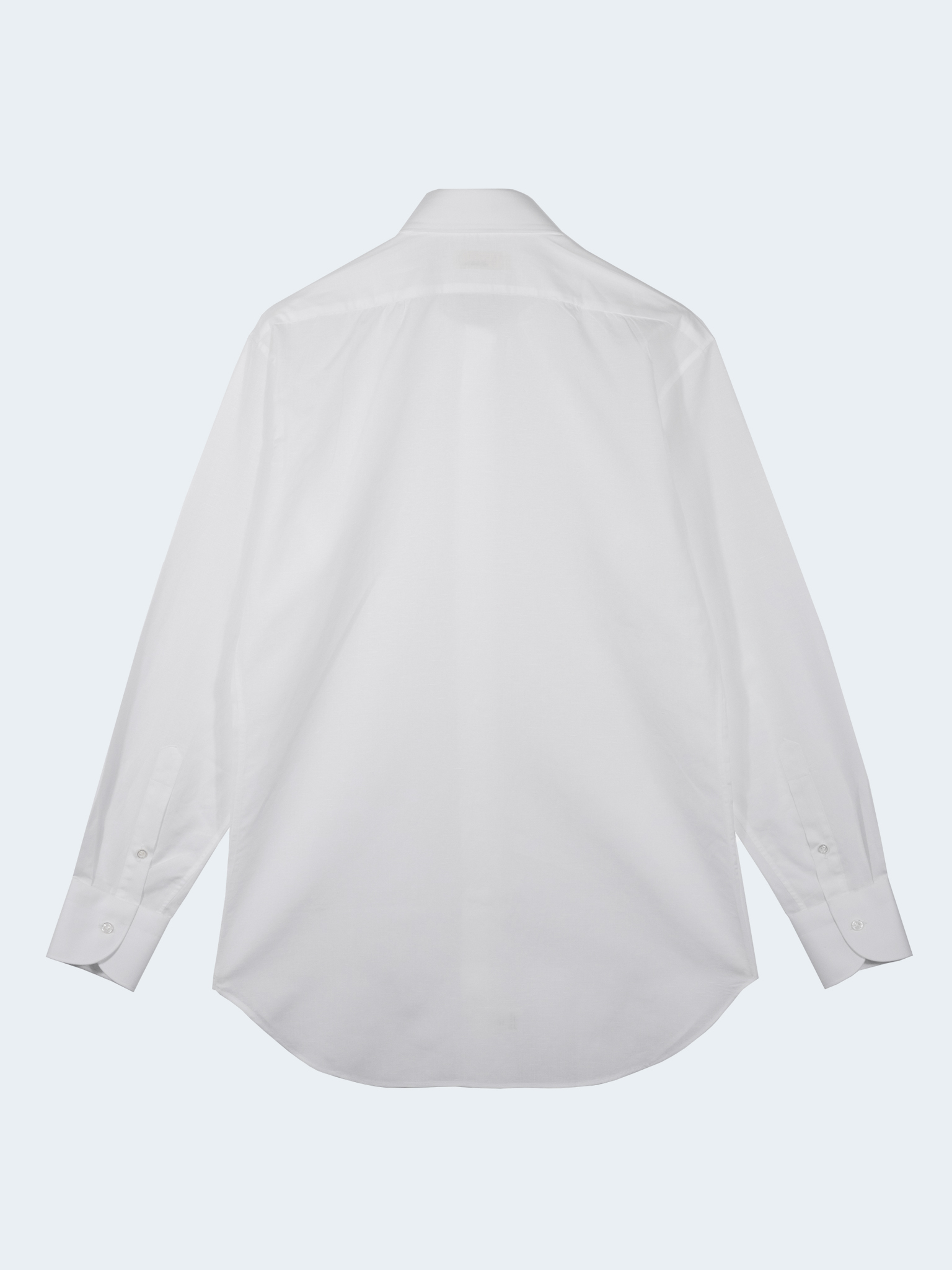 A water-soluble interlining is used, which may feel stiff at first due to the initial adhesion. We recommend washing the shirt once before wearing for the best comfort.