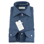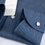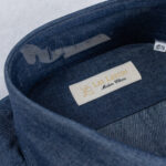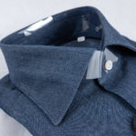 A water-soluble interlining is used, which may feel stiff at first due to the initial adhesion. We recommend washing the shirt once before wearing for the best comfort.