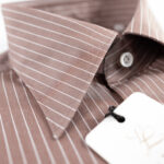 Poplin Brown Pinstripe Semi-spread collar dress shirt
