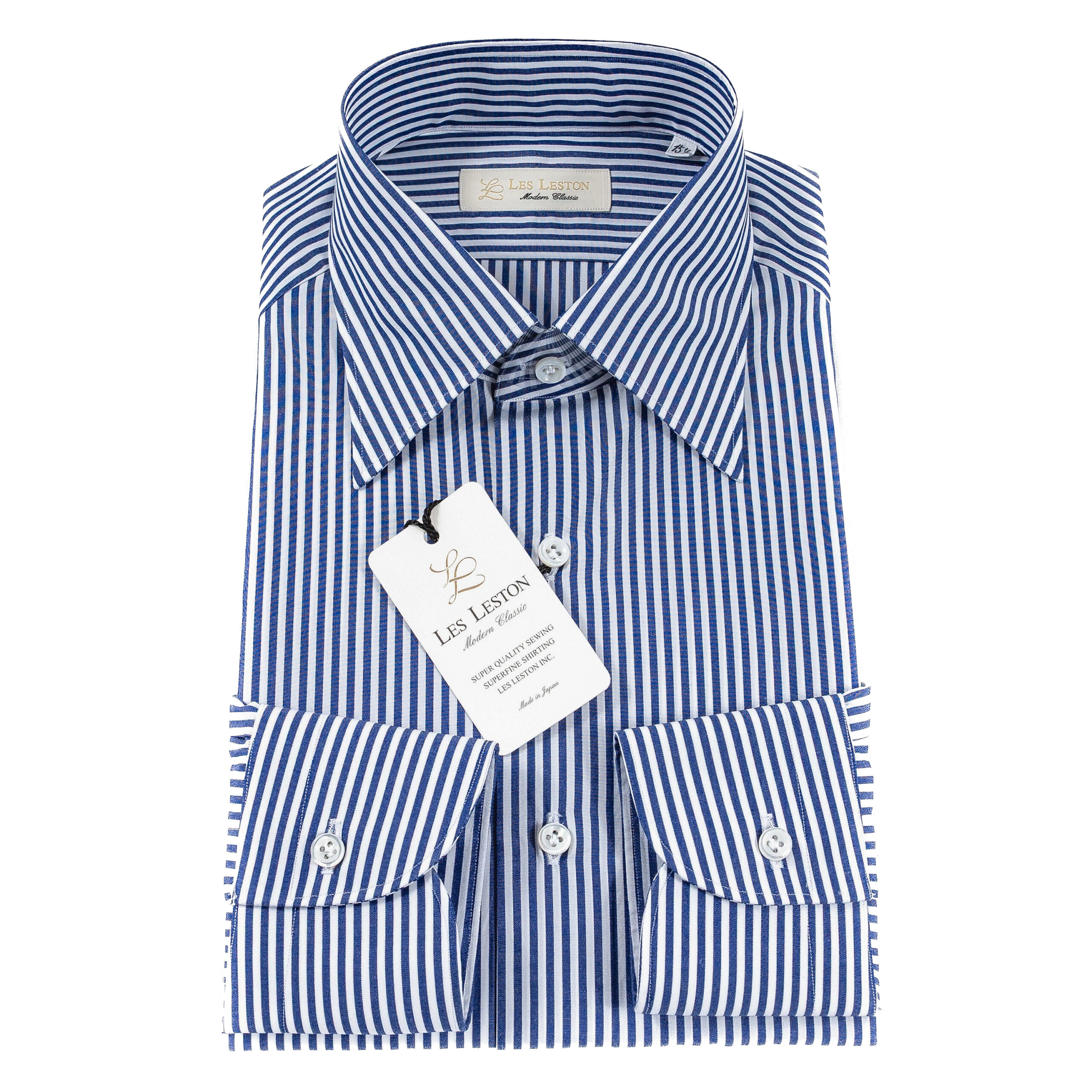 Poplin Navy Bengal Stripe Semi-spread collar dress shirt